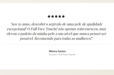 O Full Face Touché não é apenas sobre rejuvenescimento. É pertencimento, autoestima, reconexão com sua essência. É voltar a se ver com amor. É sentir quae ainda vale a pena ser cuidada, valorizada, admirada.